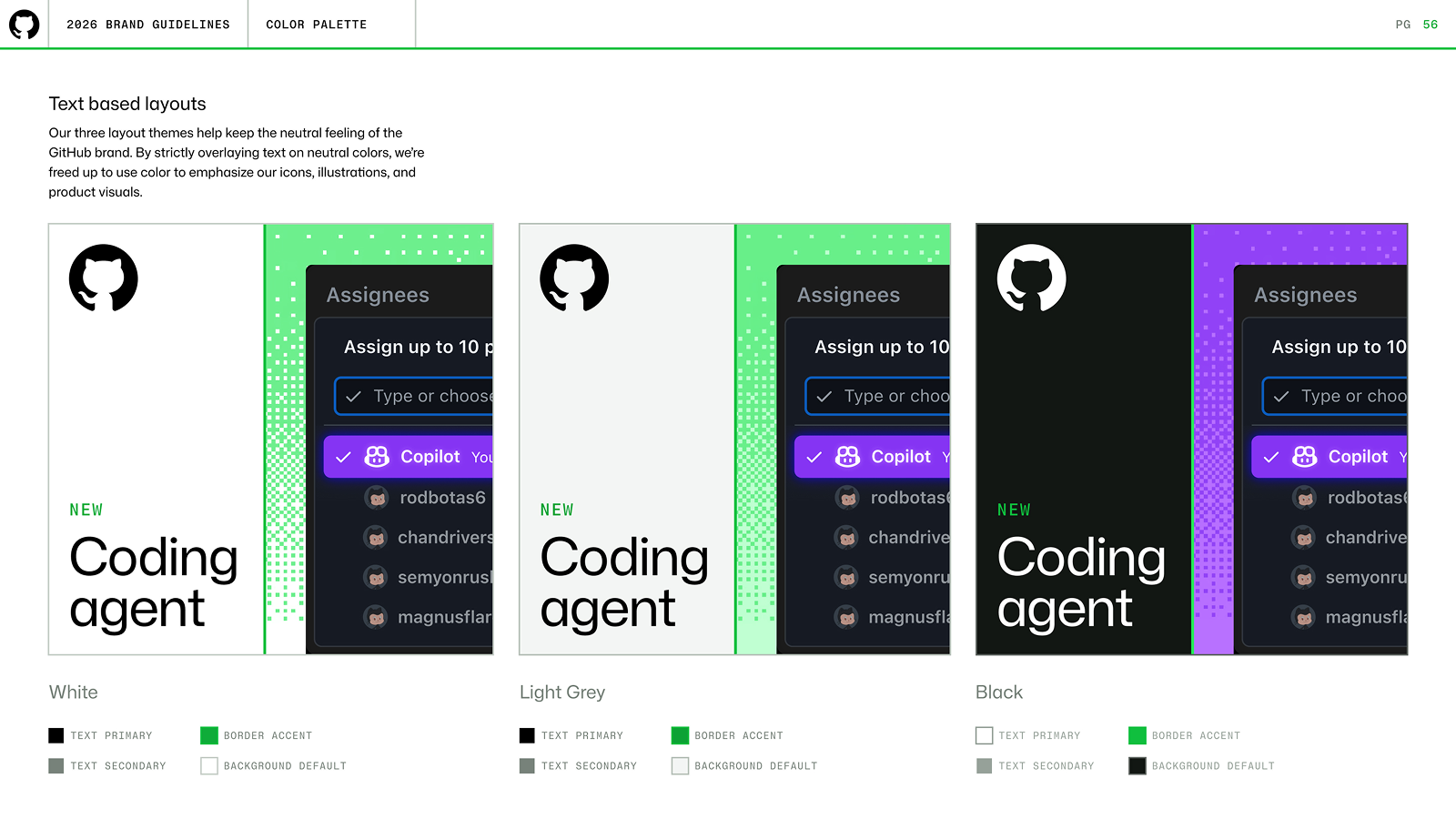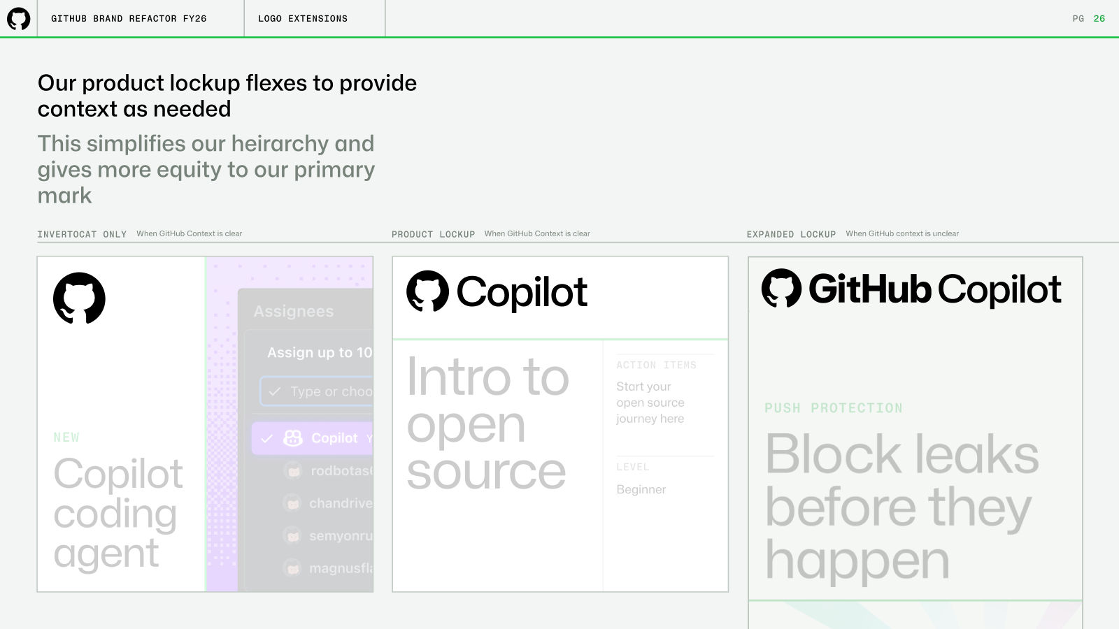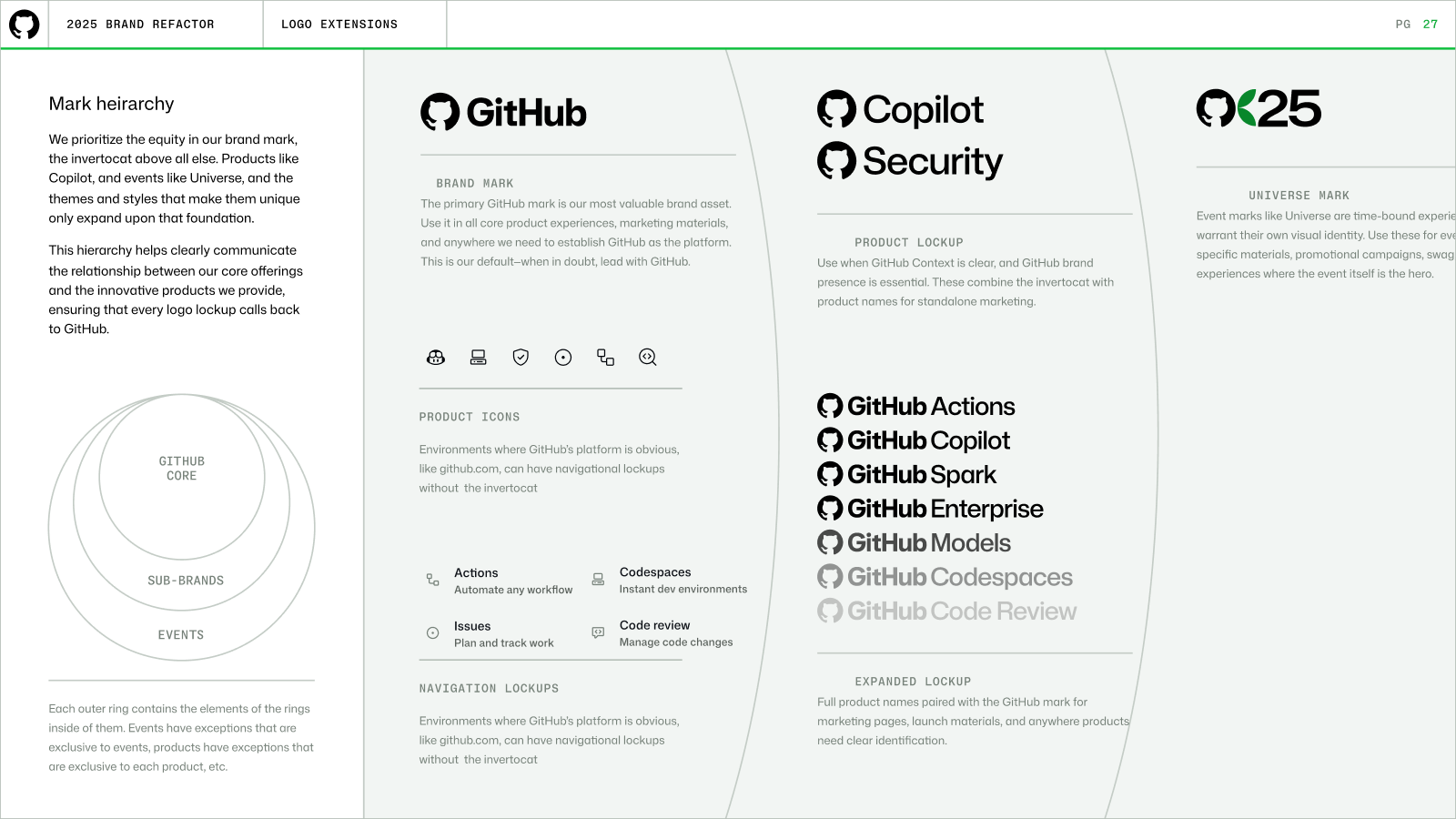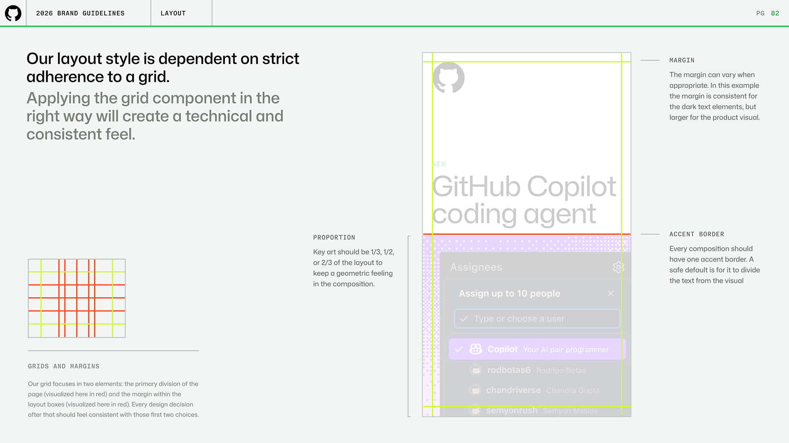 The layout system split visuals into clean halfs or thirds. Each side represented the two parts of GitHub's offering: creative, infrastructure. The layout side was legible, grided, seperate. The illustration side was creative, dimensional, expressive.