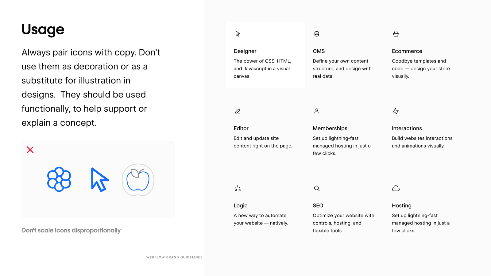 Marketing icons were our best plug and play asset. They showed up across slides and site, so they needed to feel consistent and branded.