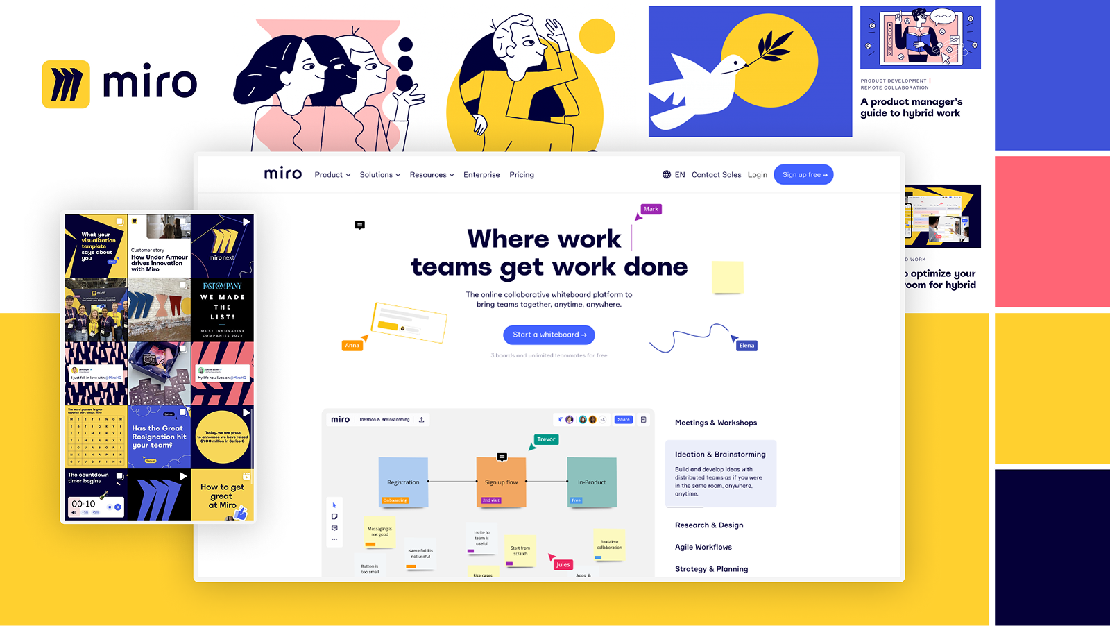 In the research phase, Pat and I put together an activity to help understand what Webflow leaders and designers wanted. This pulled together moodboards from competitors, and asked visually-minded stakeholders to provide feedback.